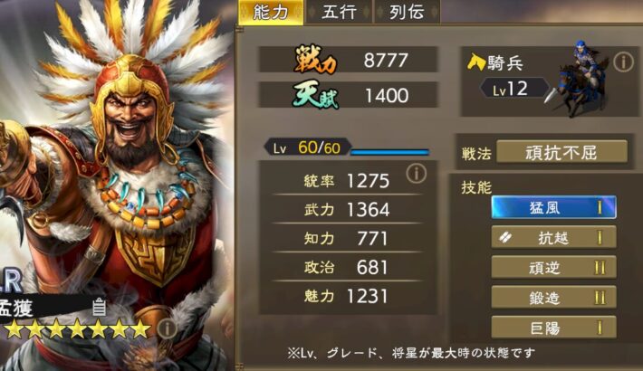 項羽について、少し説明不足だったかなと思ったので追加説明。個人的にはかなり強い武将だと思うので、引ける方は是非引いて欲しいと思います。