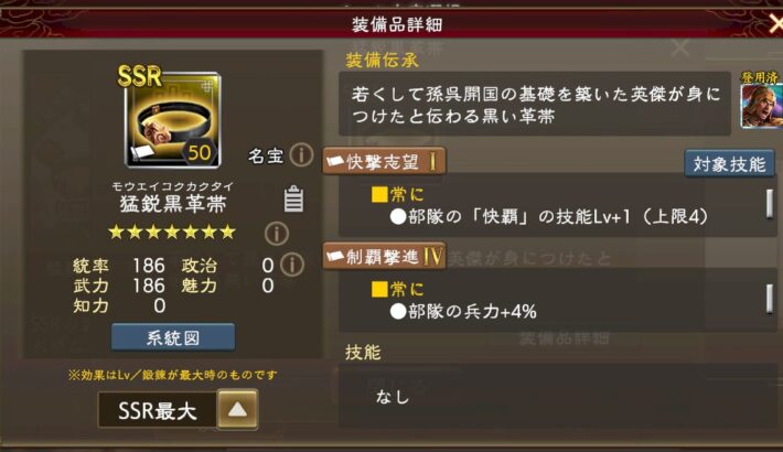【三國志覇道】LR孫策強化(孫策対策で追記あり) 2025年10月20日2025年10月20日basuma 唐突にLR孫策が強化(n回目) ですが今度の強化は割と本腰の入った強化であり、今までのような使えなくはないかなって感じの状態から、持ってるなら絶対使えよってレベルになったと思う。
