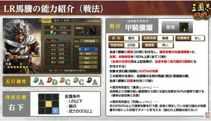 馬騰使い悪すぎじゃね問題。項燕は確保しておきたい感がある。ただどちらも強い武将ではないかなって感じはするので、スルーでも良いかも。個人的には項燕は確保を勧めておきます。多分、見た目ほど使いにくい訳ではない。