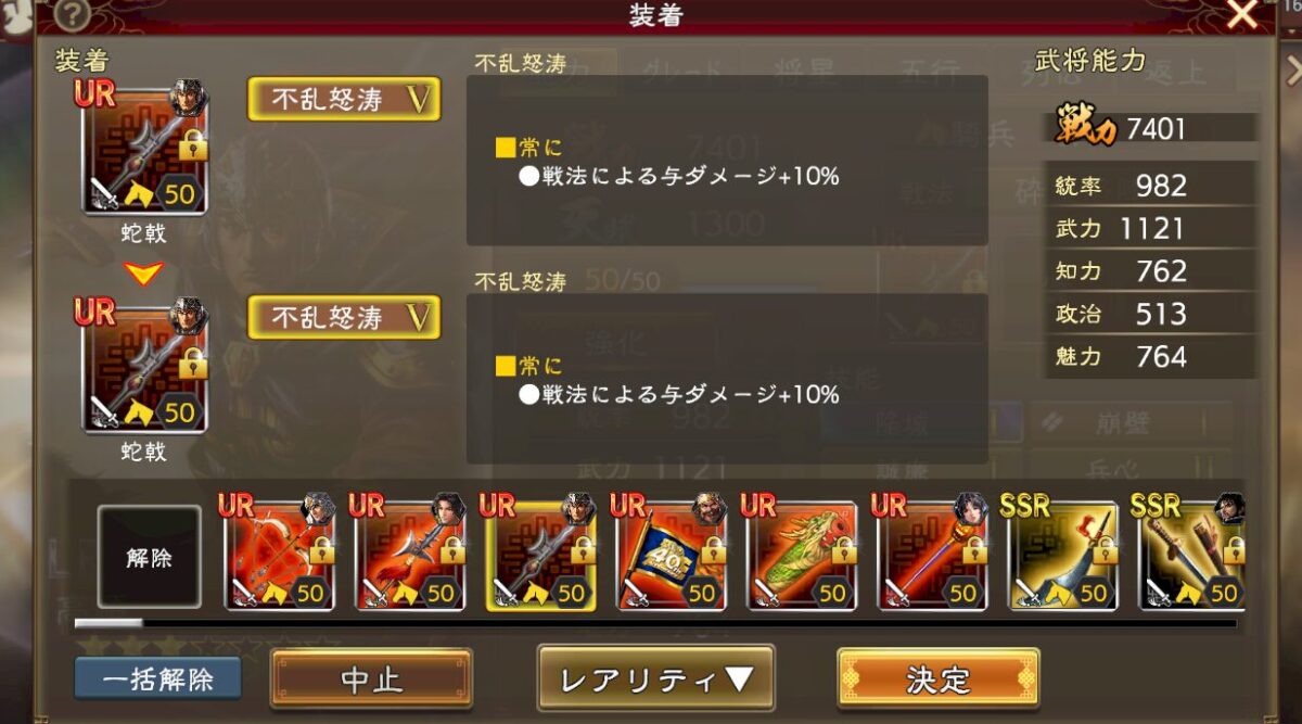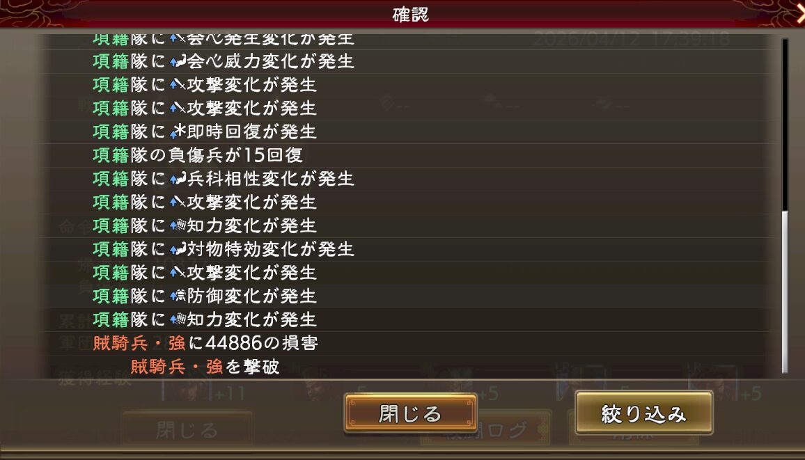 戦法の与ダメを上げる装備を持たせました。