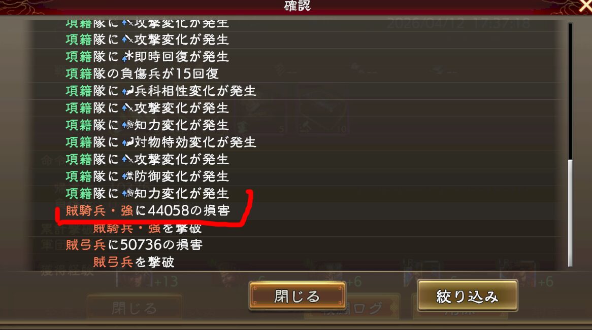 これで同じ敵部隊を殴った場合を見てみます。