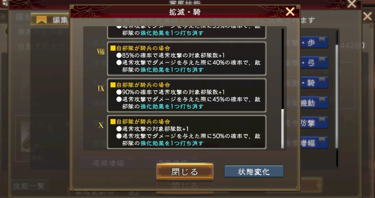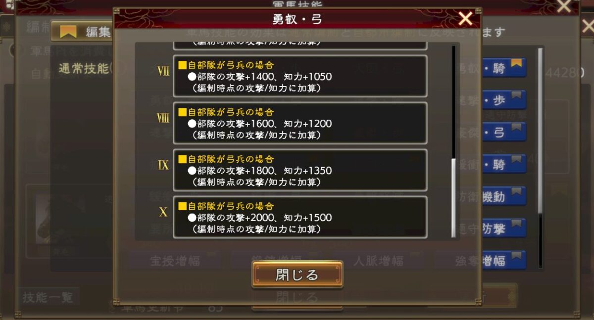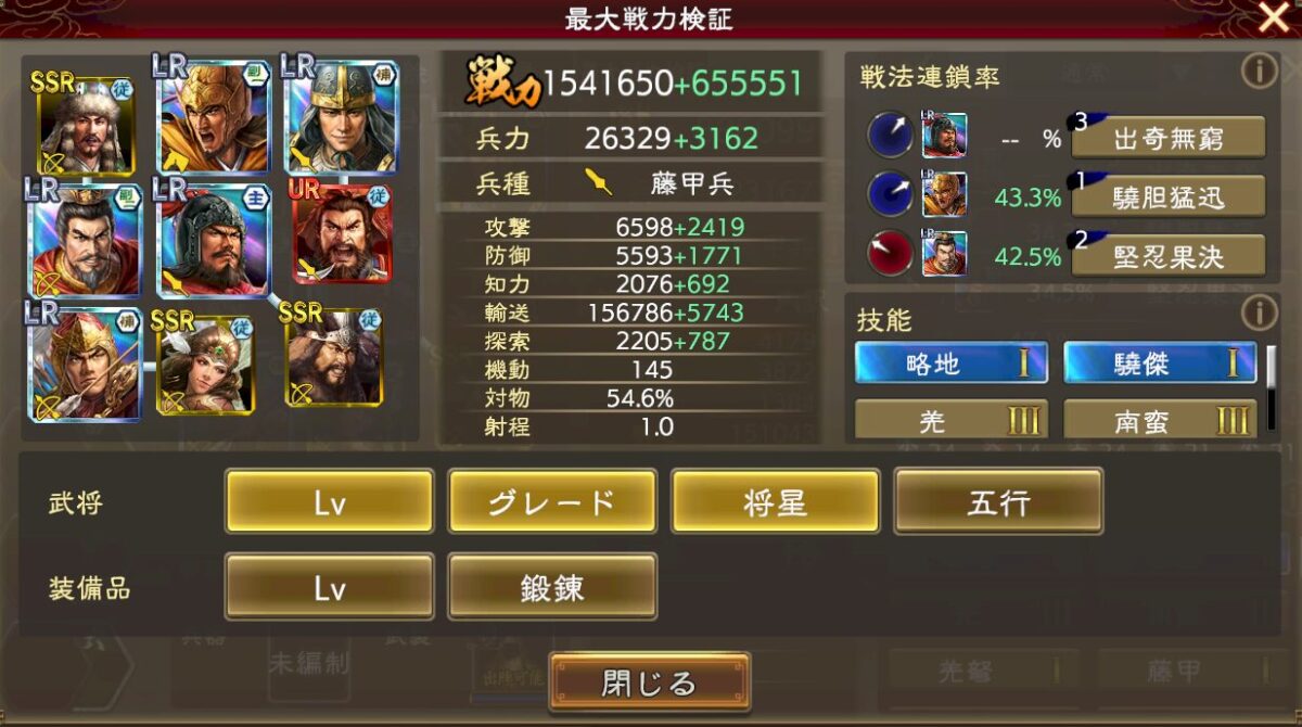 ちゃんと戦法威力バフや攻撃バフも乗せられる感じなので、君主都市攻撃妨害がある今となってはこっちの方が使い勝手良いのかもしれないです。