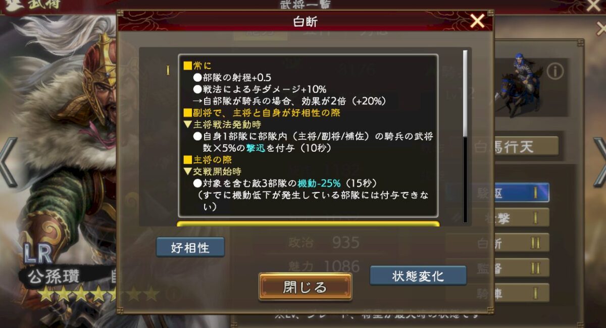 全てカバーできます、みたいな副将は存在しないと言うか、限りなく全ての戦闘要因をカバーしているのが星4以上の関羽なので、副将は関羽を伸ばしたい方向に伸ばす副将にする。