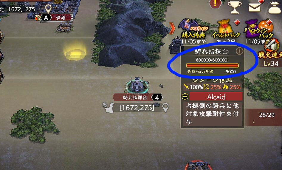 A都市の工作要所なのですが、耐久が180万で、ダメージ倍率は槍弓馬全てから100%となってます。そして、以下の画像も見て欲しいです。