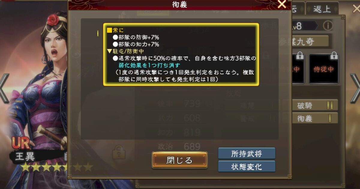 更に王異の場合、弱化効果を打ち消してくれます。しかも味方3部隊。