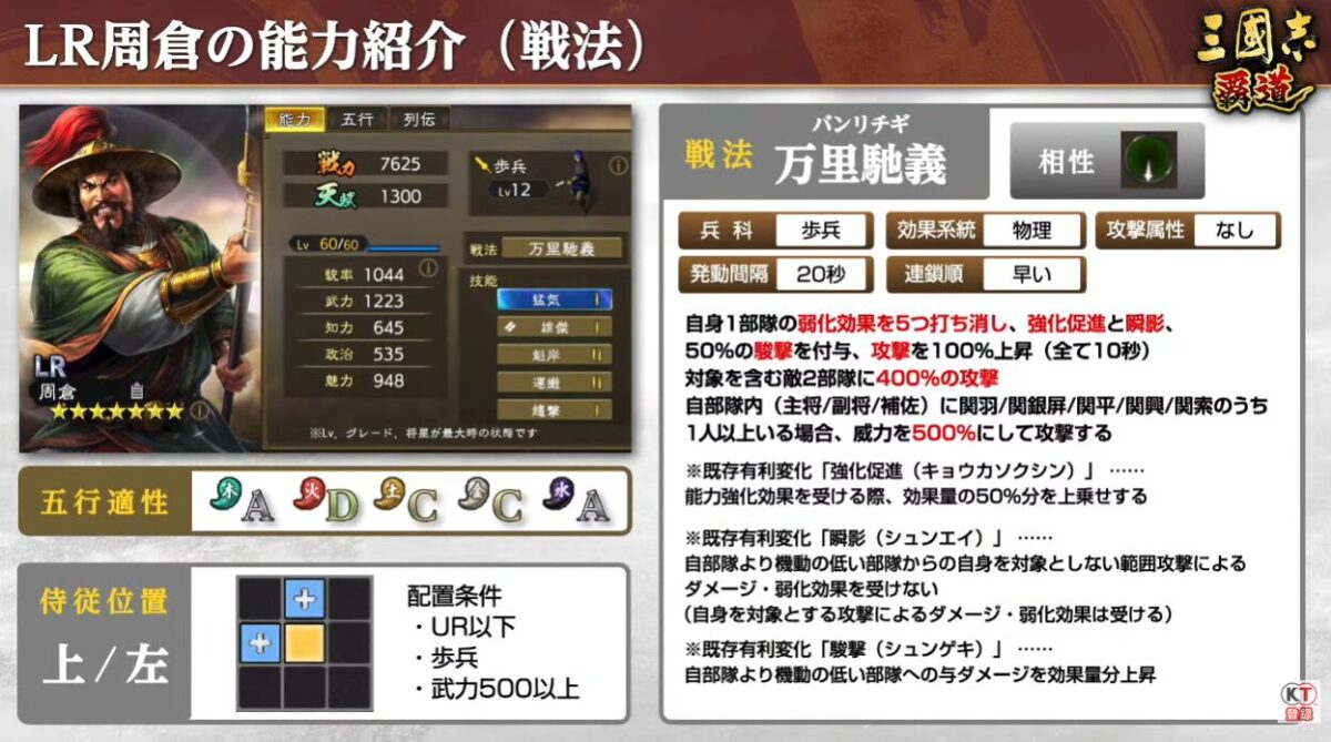馬超などの代わりに周倉使ってるなら、瞬撃でも与ダメが1.5倍になります。