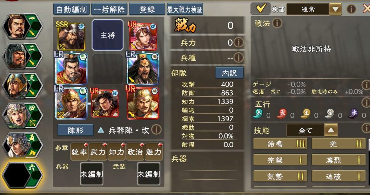 と言うわけで、今筆者が考えてる編成をアップしておきます。途中ですけども。そもそも引けるのか分からない。白起引けなかったので、項羽引けないってのもありますし。