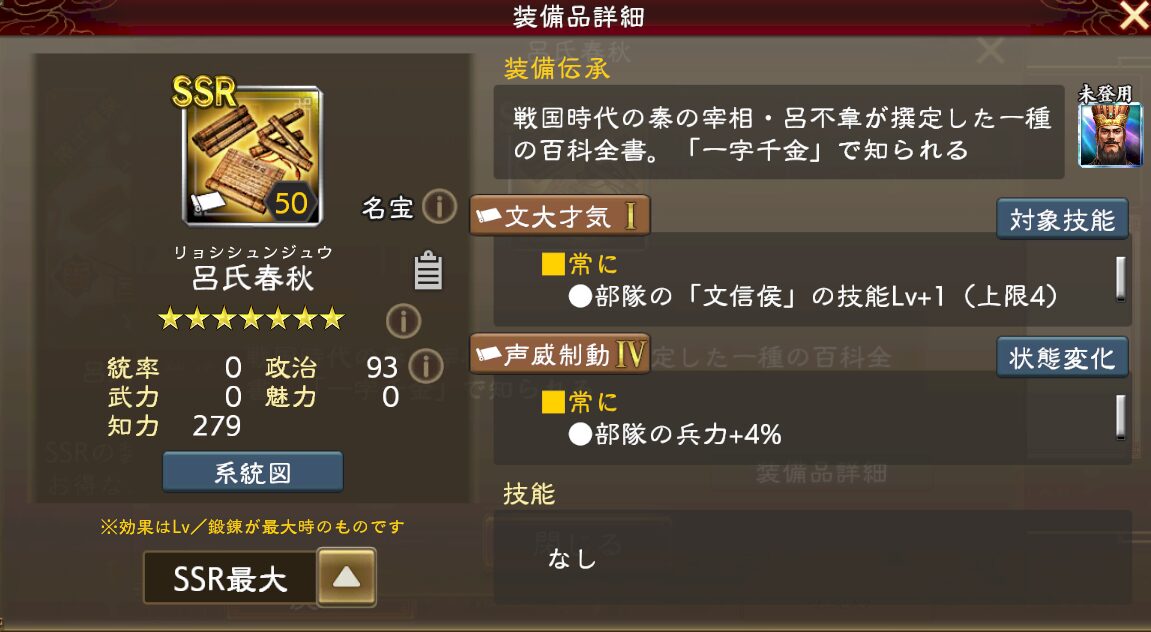 多分ですけど、呂不韋の完凸技能はこういう効果。