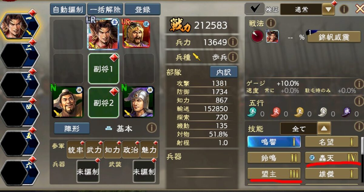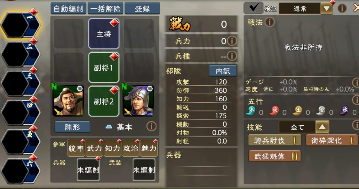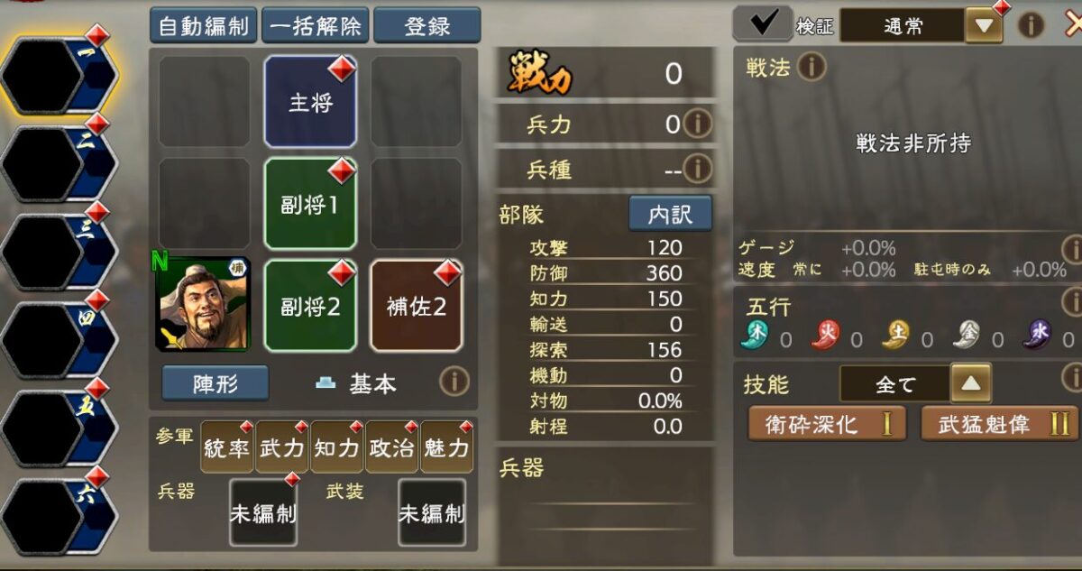 典韋名宝を持たせただけの、部隊の状況が以下になります。