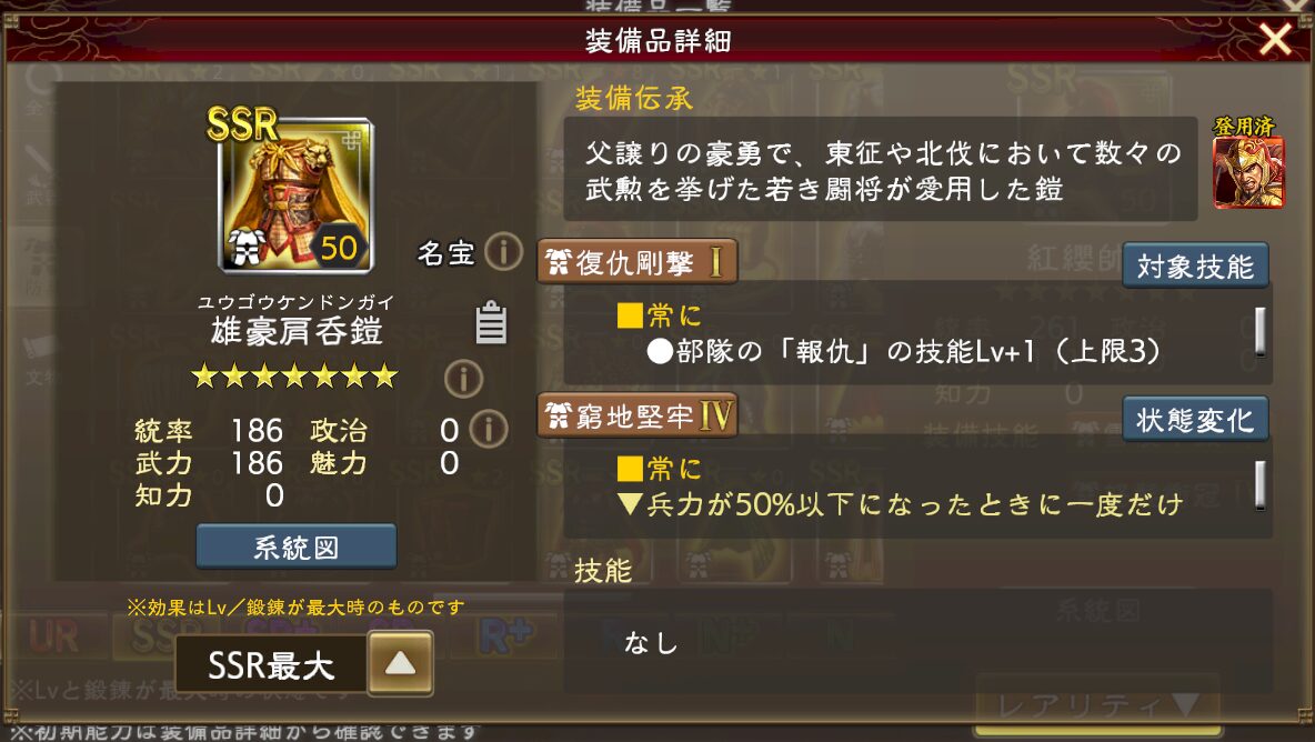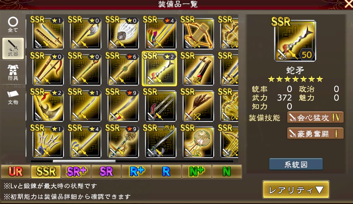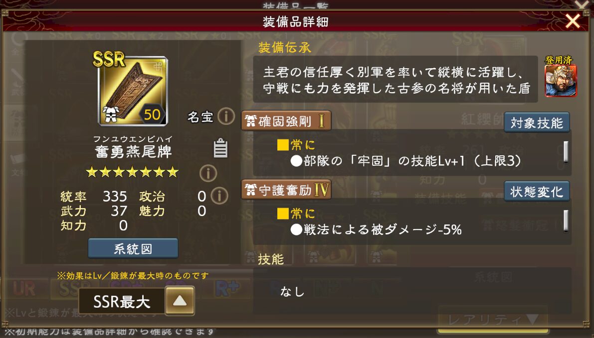 技能付きSSR装備は、SRの段階から技能が発現します。