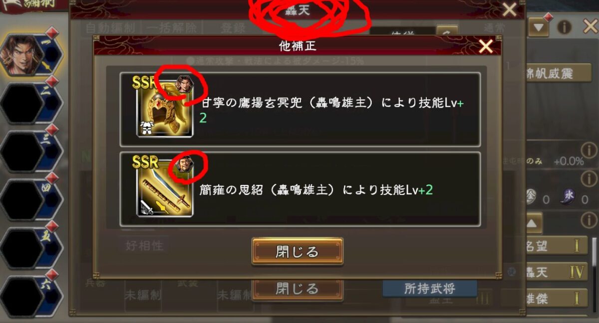 ですがこの名宝2種に渡っている技能ですが、技能の名前が同じ(轟鳴雄主)という特性を持っています。
