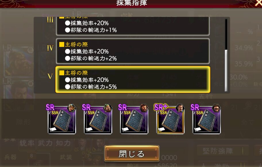 採取であれば、部隊全員(要するに5人)がSR装備を持てばUR完凸(星10)と同じ技能効果を得ることが可能ですし。
