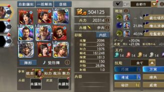 一応、戦法速度が遅いなのでLR趙雲の異種バフを受けてから戦法攻撃をぶちかませるので、実質趙雲の副将が指定席にはなると思う(というか、蜀相性の副将として考えるとそこ以外に席がない)