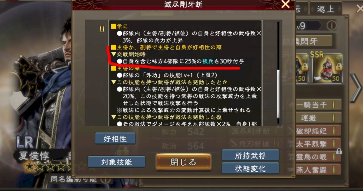 さらに夏侯惇の場合、完凸している場合はここに25%の強兵バフが発生してくる。