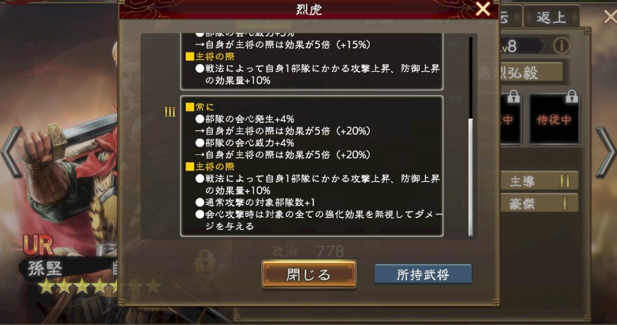 さらにUR孫堅の烈虎は攻撃範囲の拡張だけではなく、会心発生率上昇効果も持っています。