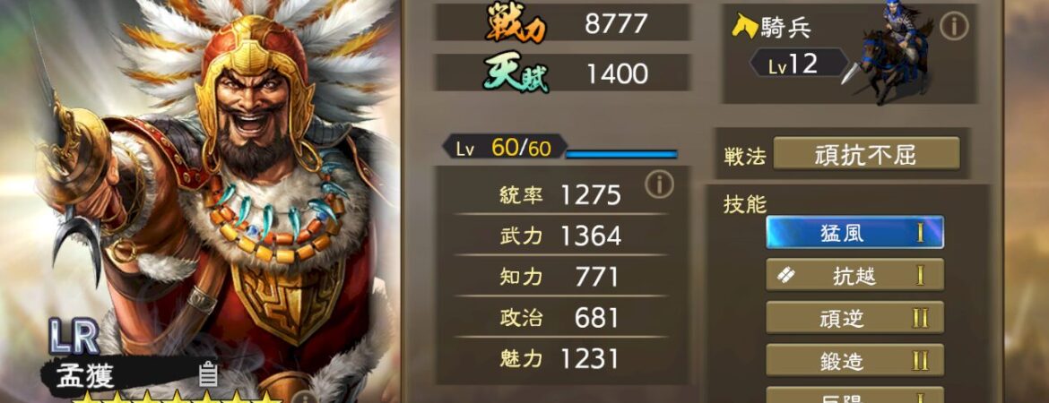 更新滞っててすみませんでしたm(__)m 少なくとも今のところ、三國志覇道を引退するまでは更新やめるつもりはありません。今回は馬謖を紹介します。