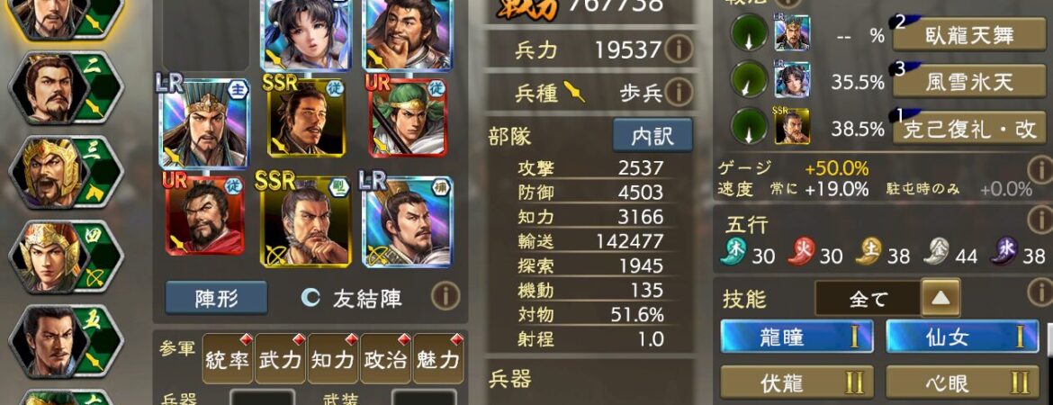 千里行にてUR李典が実装。これに伴い守勢が3に出来るようになりました。この技能が非常に強力で、しかも結構遊べます。LR武将よりもこういうの増やして欲しいと思いました。