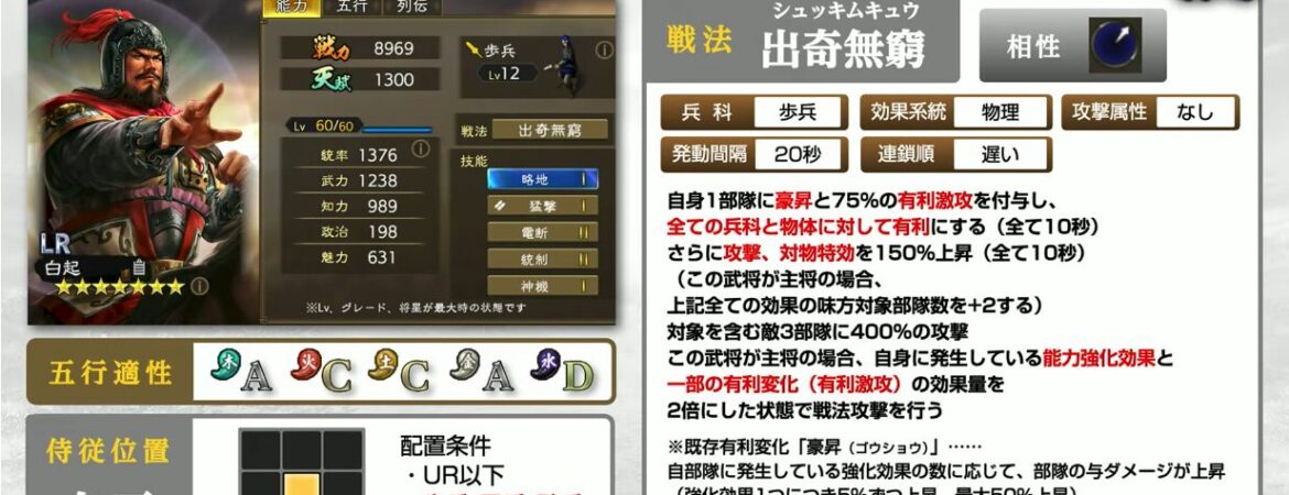 とりあえず分かってる限りでの武将評価です。こうやって振り返って纏めると、戦法性能的にはURもまだまだ現役だなって思います。やっぱり主将はステータスとか兵力がやばいと思います。あと開幕技能系はずるい