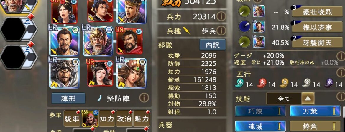 【三國志覇道】LR項籍の編成