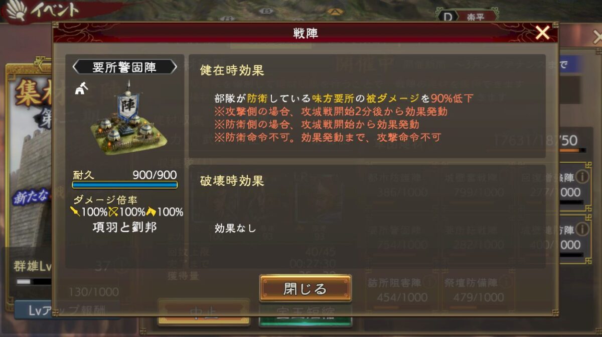 ですが「味方部隊が防衛していない要所」のダメージは軽減してくれません。味方部隊が壊滅させられたら軽減も消えるので、強いけど使いにくい感じにはなってしまいますわな。