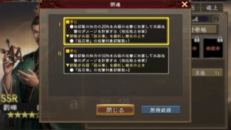 ヤンは強いのだが、要するにこの相性値の敏活を持ってくることができるのか、てのが結構な問題。LR龐統にしろSSR盧植にしろ、その武将攻めで使ってね? みたいな事になりがち。てか、私の想定ではかなりの確率でそうなる。