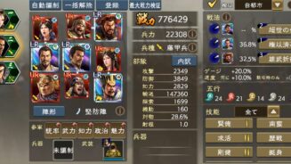 逆に言えば、貴方の攻撃編成は、同格であれば抜ける編成って事でもあります。この戦力比率をどうやって割り振っていくのか、が楽しいです。ちなみにこれ、筆者ぐらい足りてないから楽しいです。強すぎる人は戦力割り振りを難しく考えなくても、素の状態で受けた後に戦法飛ばして全部吹っ飛ばせる無双ができるので。