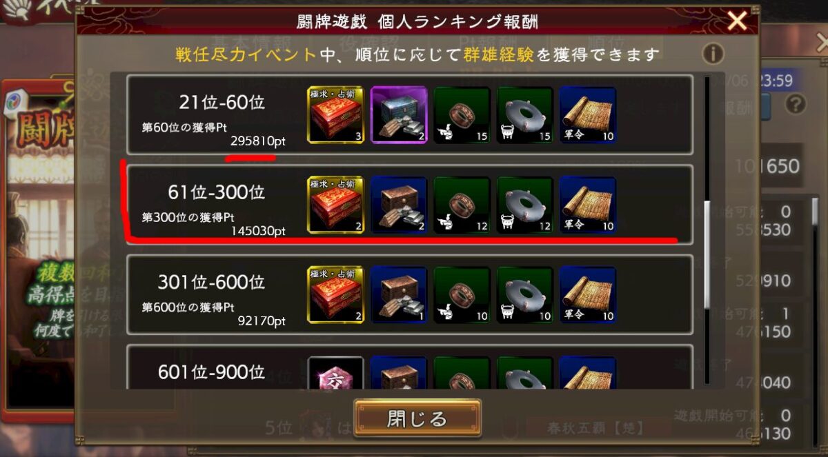 まあ要するに、これぐらいの雑さでも300位は狙えるしイベント完走はできるってことです。